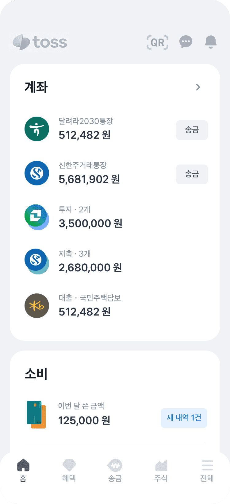 내 모든 금융 내역을 한눈에 조회하고 한 곳에서 관리하세요.