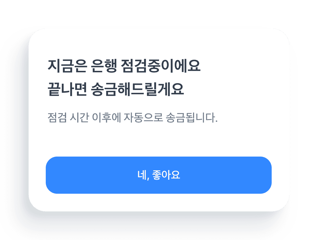점검 시간이 끝나면 토스가 알아서 송금해드릴게요.
